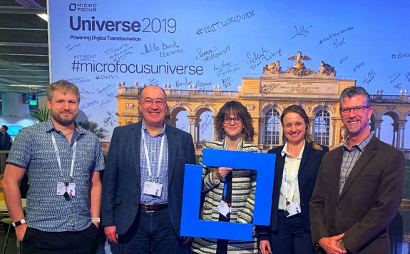 Micro Focus Global Vice President, Marketing/Enablement, Genefa Murphy (center) joined the Team Vivit (Left to Right), Jonathon Wright, Richard Bishop, Annemarie Stuiver and Bob Crews.