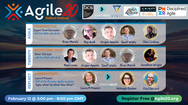 2021 celebrate 20 years of Agile with Vivit – To celebrate the Agile Manifesto turning 20 years old on the 12th February 2021, and in partnership with the Agile20Reflect Festival, the following