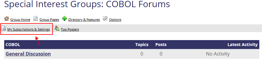 From the LUG or SIG page for the forum you would like to join, and once you have clicked on “Forum” in the right rail, just click on “My Subscriptions & Settings” to join the forum.