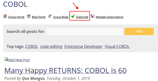 Once you have clicked on “Blog” on the LUG or SIG you wish to join, simply click on “Subscribe” as shown below. You can subscribe to any LUG or SIG blog.