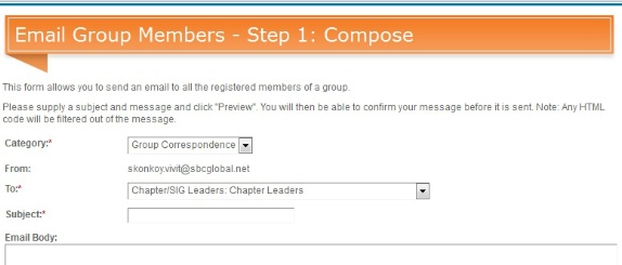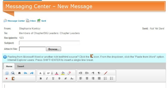 are three-ways to message you Chapter/SIG members. As shown below from the